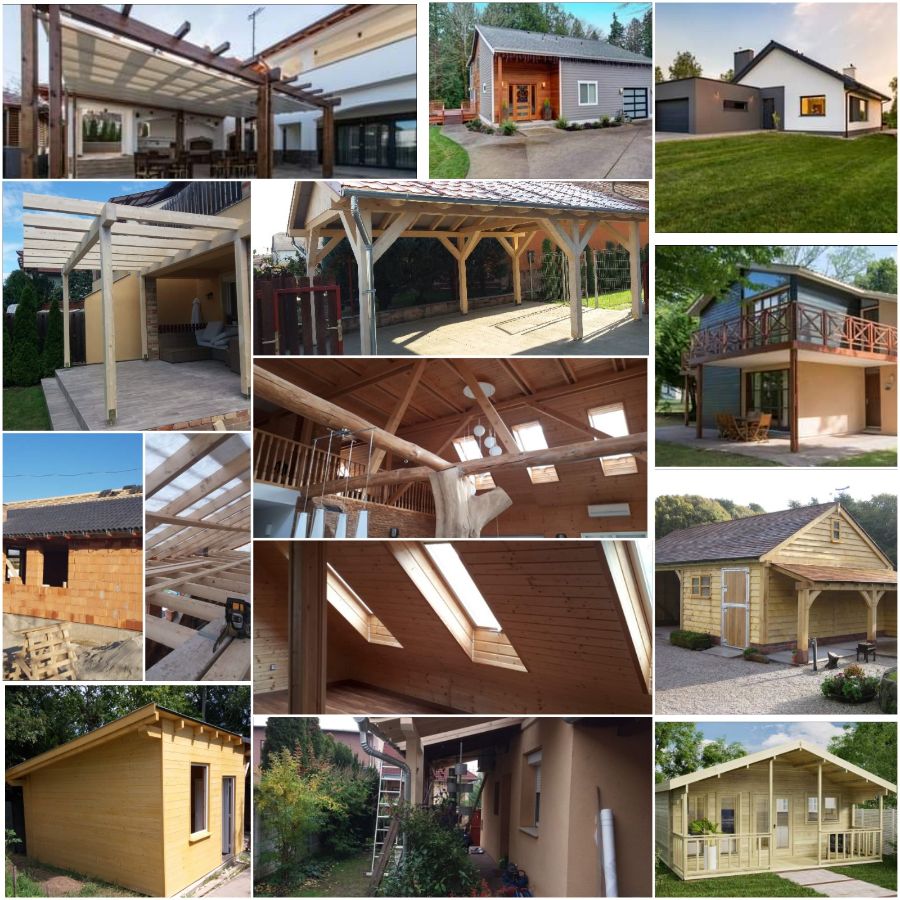 Könnyűszerkezetes hozzáépítés, tetőtér beépítés, tetőépítés, terasz, előtető, pavilon, kerti ház, fatároló, kocsibeálló valamint tetőcsere és fafödém építését is vállaljuk.
